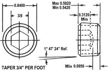 | Nominal Size | Nominal O.D. | Threads Per Inch | Hex Socket Size | Key Engagement | Wall Thickness | Overall Length | Tap Drill Size | |
