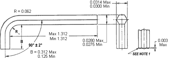 | Wrench Size | Hexagon Width Across Flats | Hexagon Width Across Corners | Length of Short Arm | Length of Long Arm (Short Series) | Radius of Bend | Chamfer | Torsional Shear - Ave. | Torque Rating | ||||