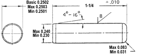 | 1/4 (0.2500) | 0.2502 | 0.2503 | 0.2501 | 0.240 | 0.230 | 0.083 | 0.031 | 12,800 | 1-1/4 | 0.2500 | 0.2495 |