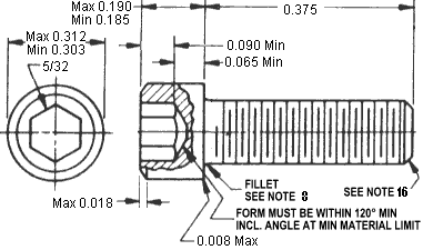 | No. 10 (0.1900) | 0.1900 | 0.1840 | 0.312 | 0.303 | 0.190 | 0.185 | 0.171 | 5/32 (0.156) | 0.090 | 0.065 | 0.005 | 3/8 |